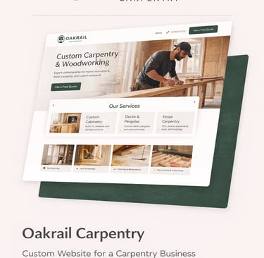 Oakrail is a carpentry service website designed to showcase craftsmanship, communicate services clearly, and build trust with homeowners. The site emphasizes strong visuals, straightforward navigation, and a structure that supports inquiries and estimates.